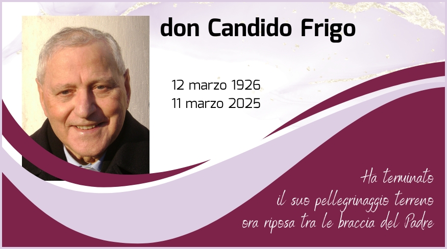 Avrebbe compiuto 99 anni il giorno 12 marzo 2025 don Candido Frigo, spentosi stamattina (11 marzo) nella sua abitazione di Padova.