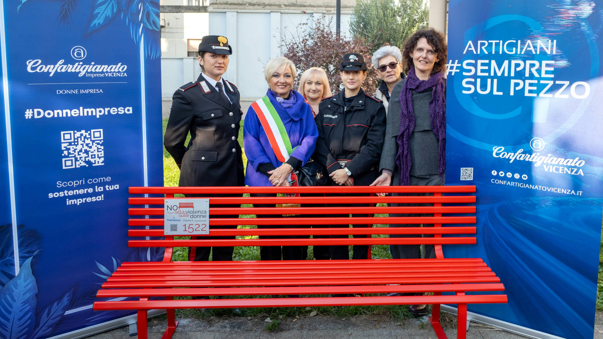 “Le panchine rosse ricordano vite spezzate, sogni distrutti, donne lasciate sole o che non hanno avuto il tempo o la forza di chiedere aiuto. Allor stesso tempo però questi simboli parlando della determinazione nel dire ‘no alla violenza’, un no che unisce tutta la comunità perché solo insieme le cose possono cambiare”. Con queste parole la presidente del Movimento Donne Impresa di Confartigianato Imprese Vicenza, Sabrina Pozza, ha salutato la nuova panchina rossa installata in viale Pietro Ceccato a Montecchio Maggiore.