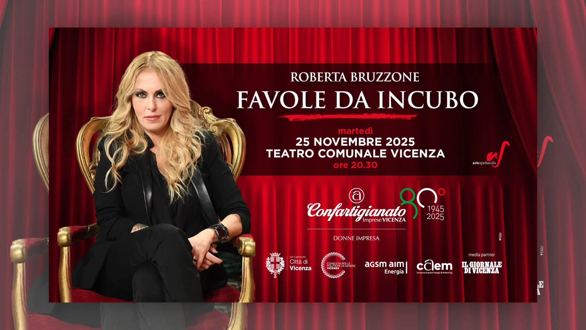 Evento/spettacolo con Roberta Bruzzone il 25 novembre al Teatro Comunale di Vicenza. La serata è promossa dal Movimento Donne Impresa di Confartigianato